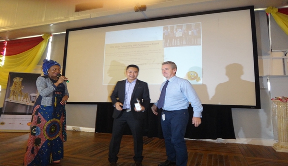 海隆油服尼日利亞公司總經(jīng)理鄭國(guó)旗從SPDC WELLS手中接過獎(jiǎng)牌