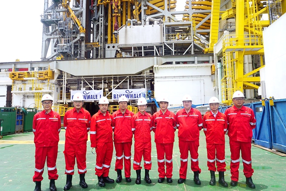 在“藍(lán)鯨1號(hào)”鉆井平臺(tái)上合影