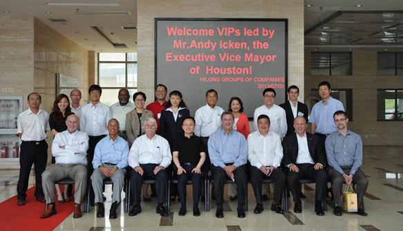 和美國(guó)休斯敦副市長(zhǎng)Andy Icken(左三)、大休斯頓合作委員會(huì)主席Robert Harvey(右四)合影留念