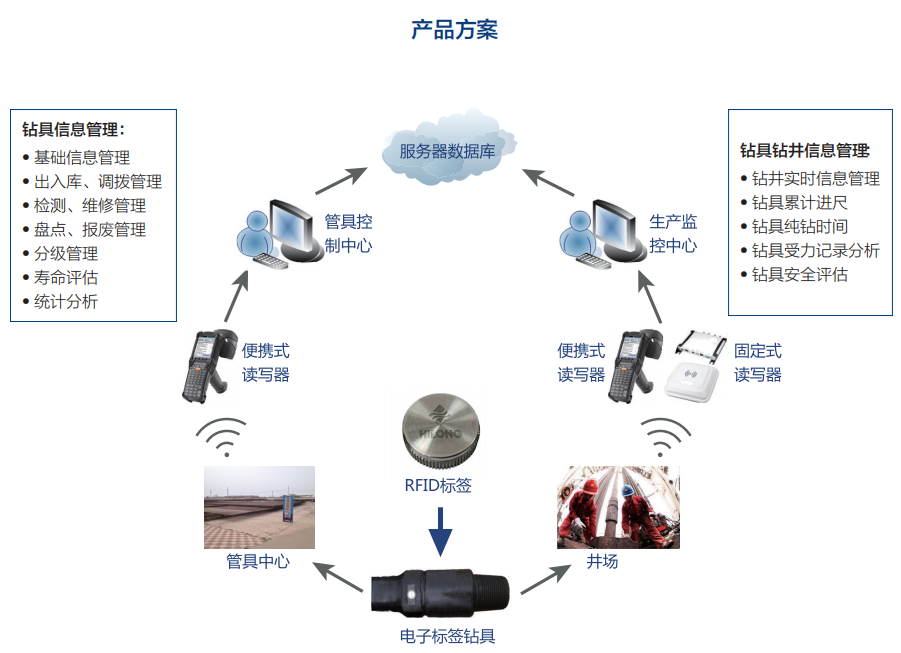 海隆電子標(biāo)簽鉆具及物聯(lián)網(wǎng)管理系統(tǒng)——通過每根鉆具產(chǎn)品上安裝無線射頻識(shí)別(RFID)標(biāo)簽,使其擁有獨(dú)一無二的“電子身份證”,結(jié)合智能讀寫設(shè)備和物聯(lián)網(wǎng)管理系統(tǒng),高效、精確地實(shí)現(xiàn)鉆具生產(chǎn)、出入庫、調(diào)撥、使用、維修、檢測(cè)、報(bào)廢等全生命周期的管理。
