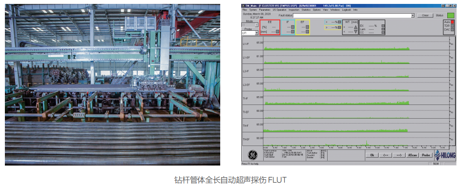 (d)管體100%全長(zhǎng)漏磁探傷,100%FLUT(縱向、橫向、斜向超聲檢測(cè)+超聲測(cè)厚)+100%管端MPI(或UT),鉆桿接頭100%UT+100%MPI,焊縫100%UT+100%MPI